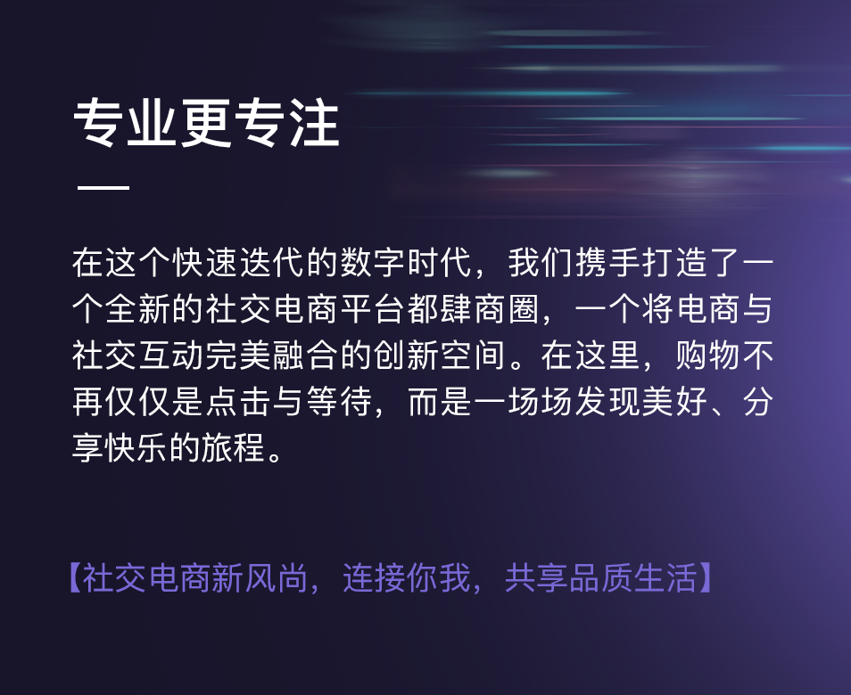 都肆商圈APP,让每一位用户都能在享受购物乐趣的同时,通过社交的力量发现更多优质商品,分享生活美好,实现价值共创与共享。